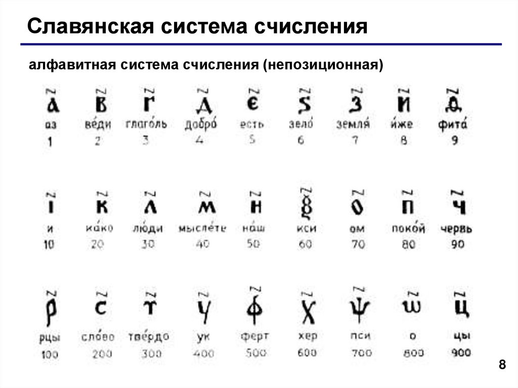 Славянская система счисленияалфавитная система счисления (непозиционная)