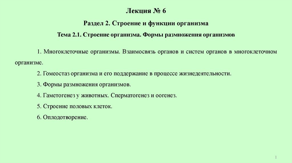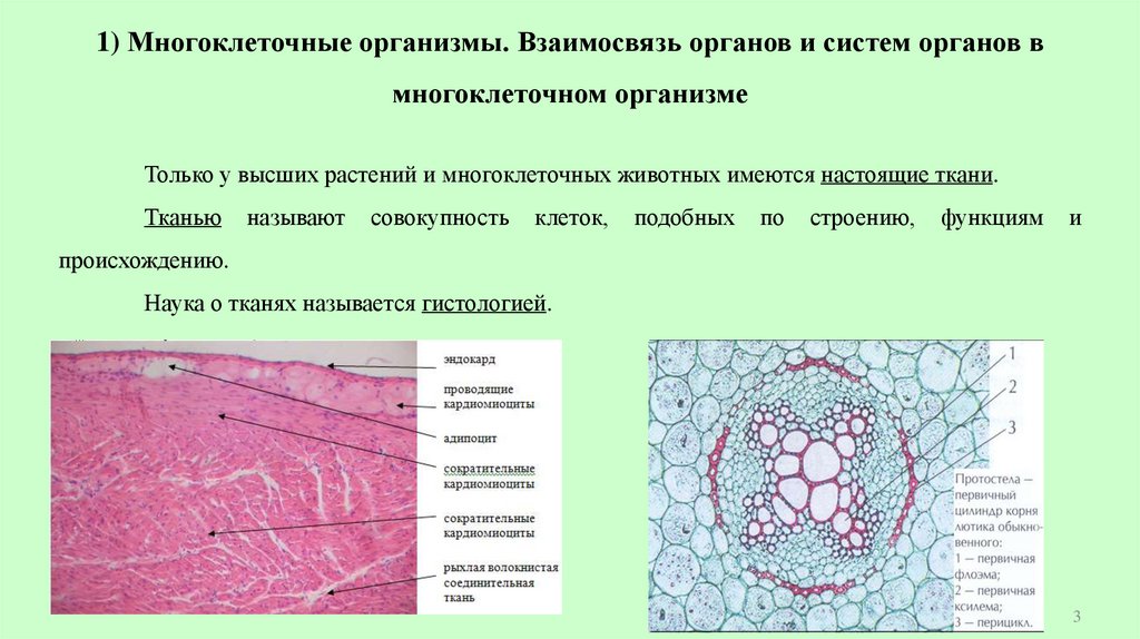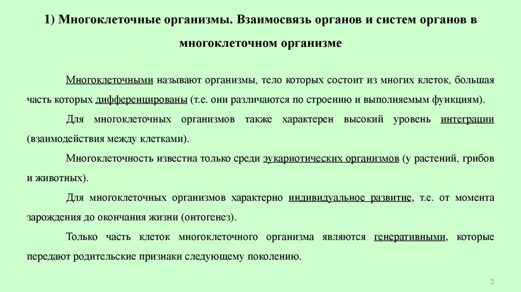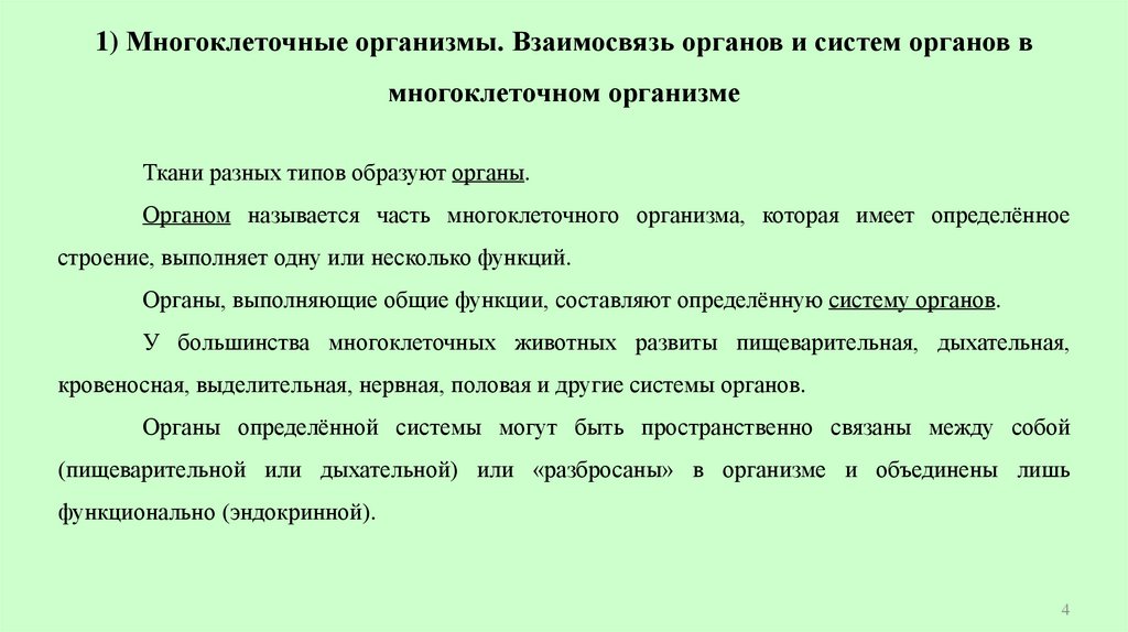 1) Многоклеточные организмы. Взаимосвязь органов и систем органов вмногоклеточном организме