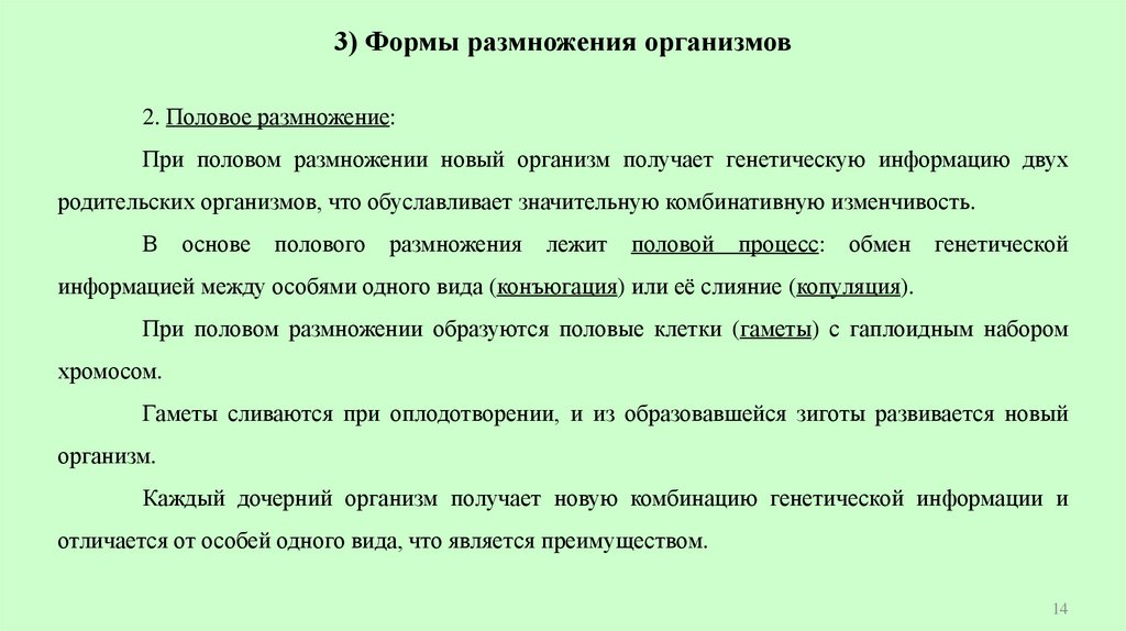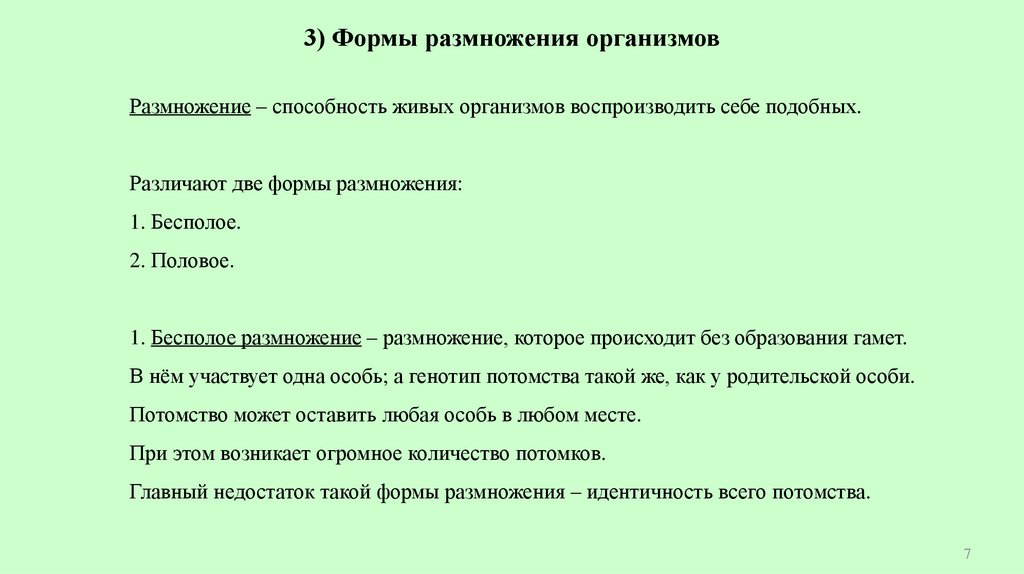 3) Формы размножения организмовРазмножение – способность живых организмов воспроизводить себе подобных.