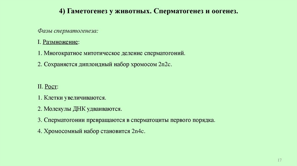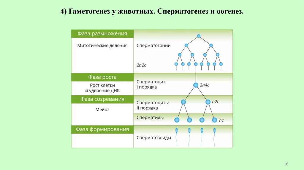 4) Гаметогенез у животных. Сперматогенез и оогенез.16