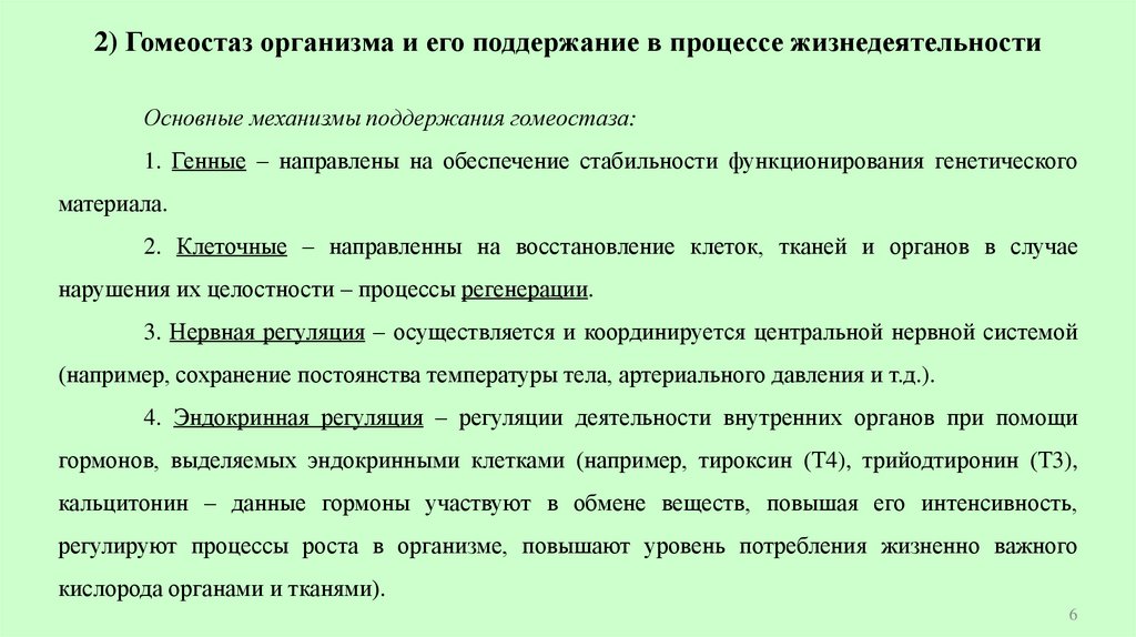 2) Гомеостаз организма и его поддержание в процессе жизнедеятельностиОсновные механизмы поддержания гомеостаза: