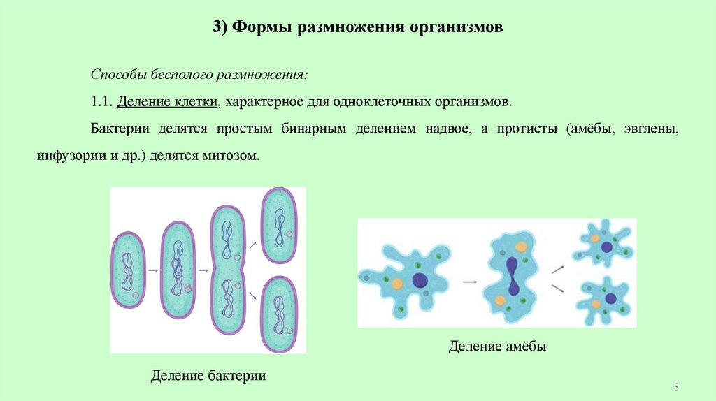 1.1. Деление клетки, характерное для одноклеточных организмов.