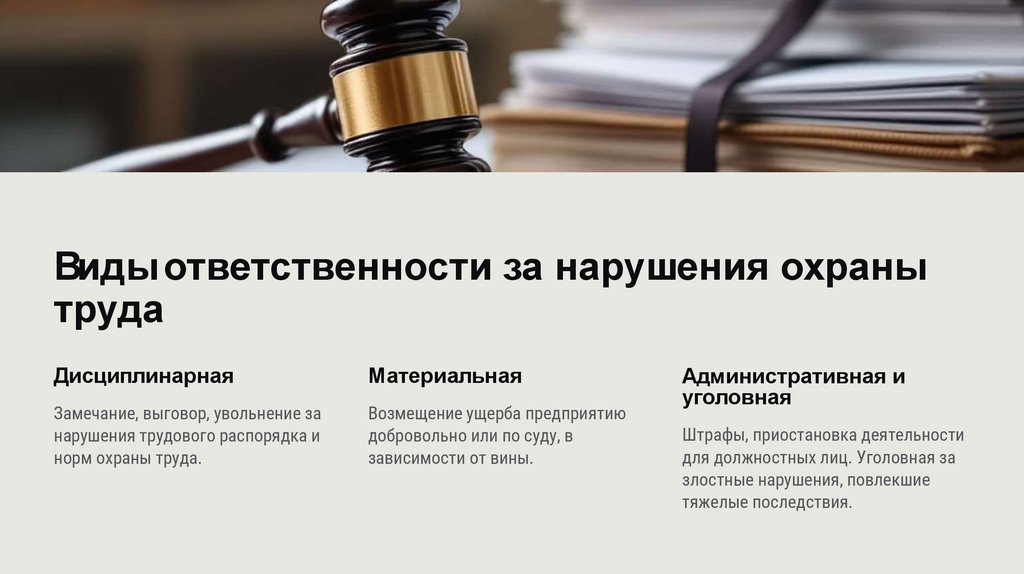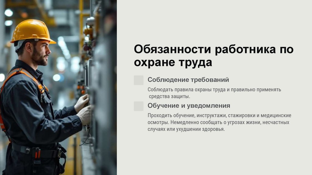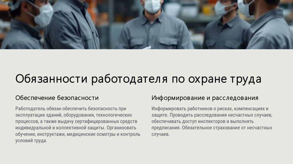 Обязанности работодател я по охране трудаОбеспечение безопасности
