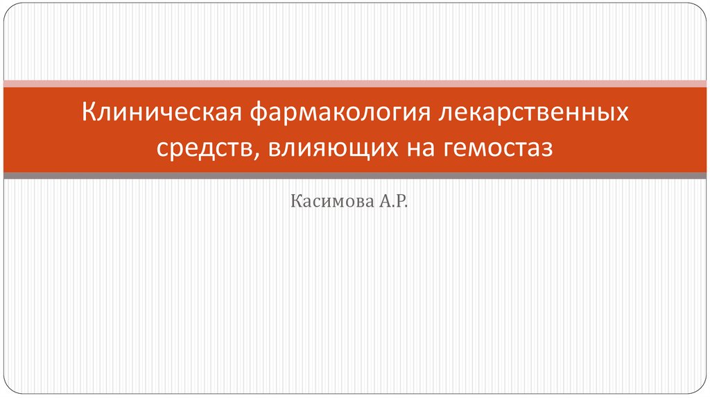 1. Клиническая фармакология лекарственных средств, влияющих на гемостаз