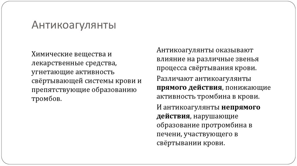 др.). В последнем случае конечный этап свертывания крови ингибируется