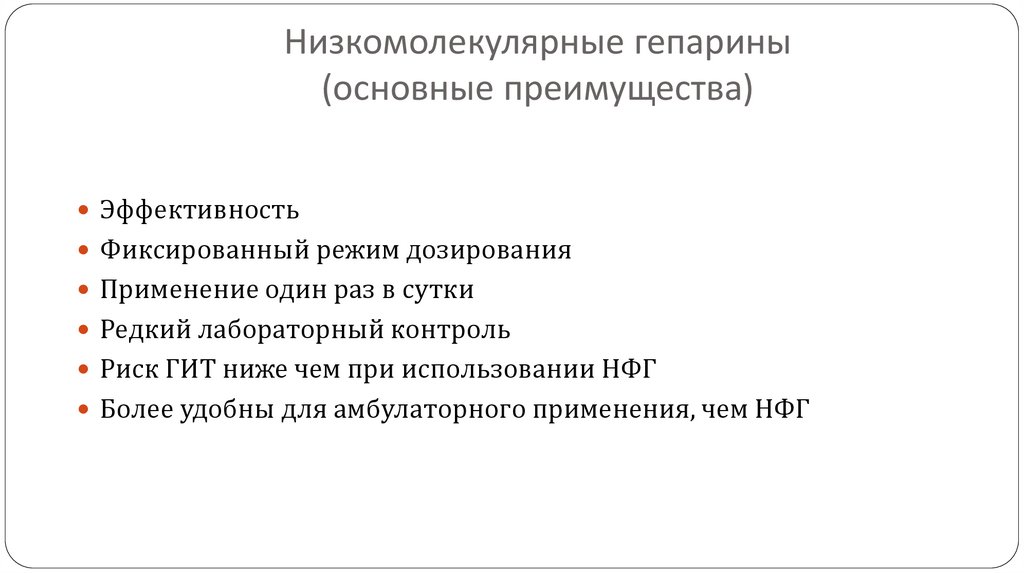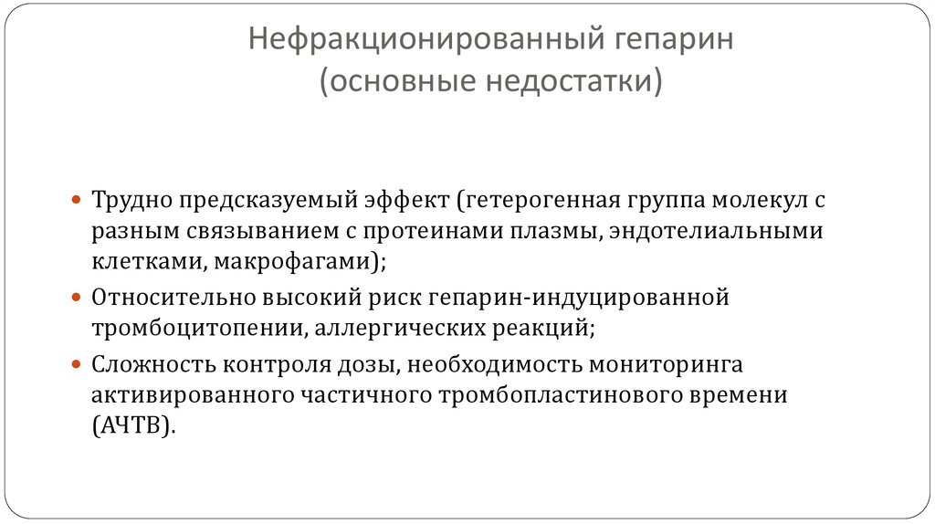 гепаринотерапия НФГ (тест реагирует на сравнительно низкие