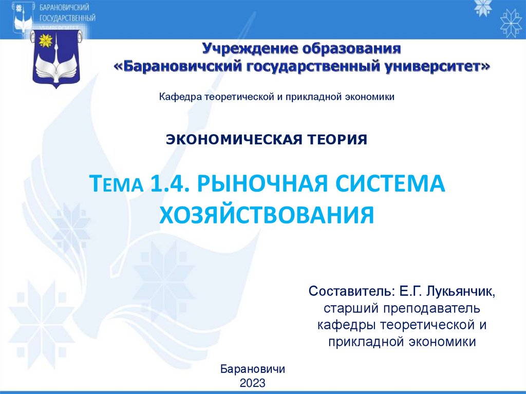 Кафедра теоретической и прикладной экономикиЭКОНОМИЧЕСКАЯ ТЕОРИЯ