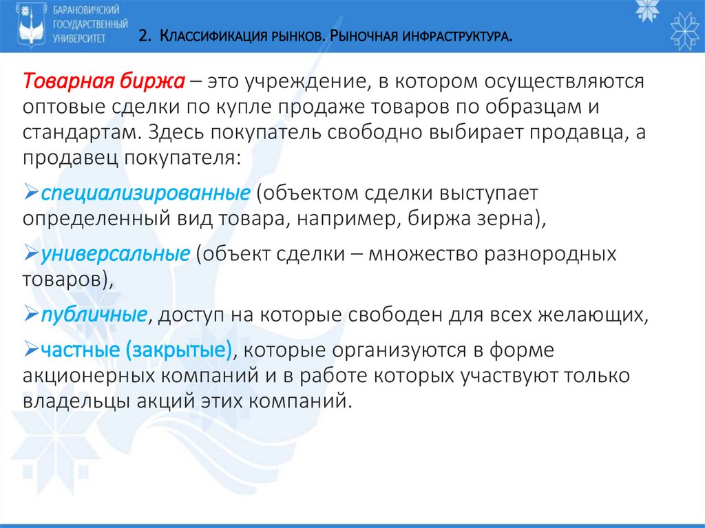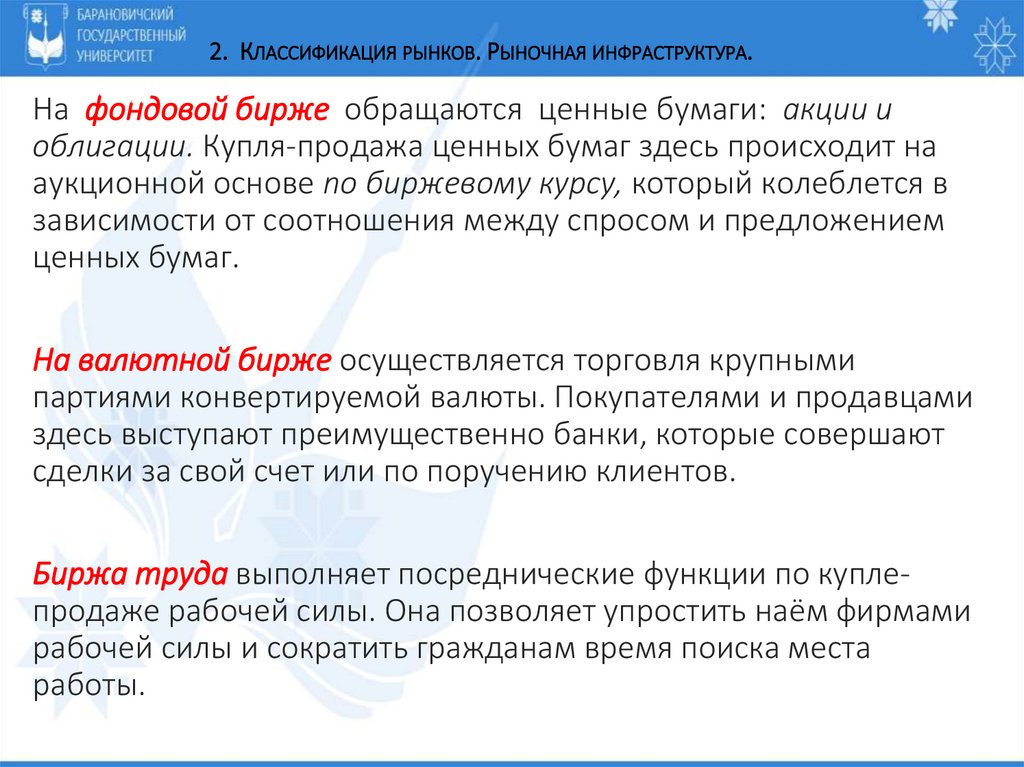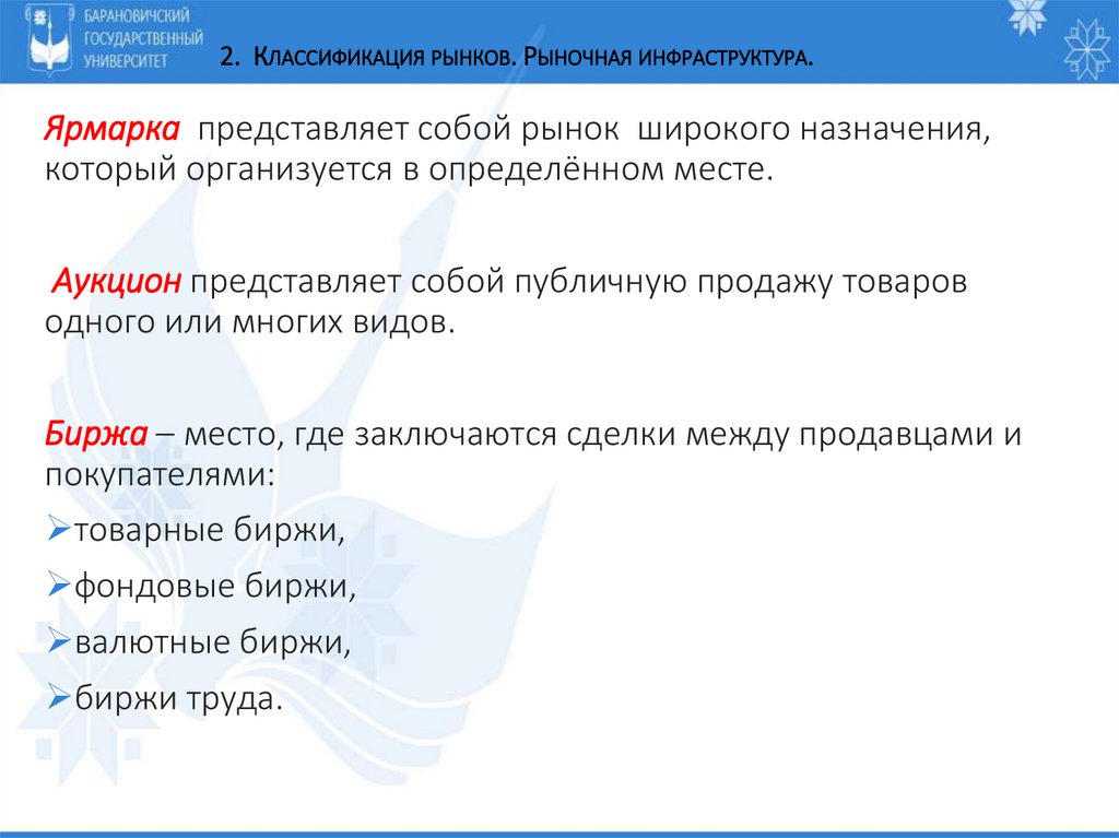 2. Классификация рынков. Рыночная инфраструктура.