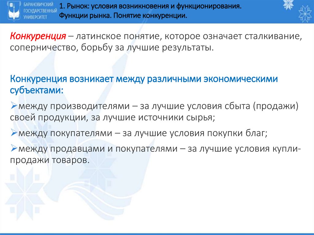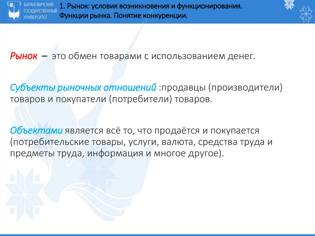 1. РЫНОК: УСЛОВИЯ ВОЗНИКНОВЕНИЯ И ФУНКЦИОНИРОВАНИЯ.ФУНКЦИИ РЫНКА. ПОНЯТИЕ КОНКУРЕНЦИИ.