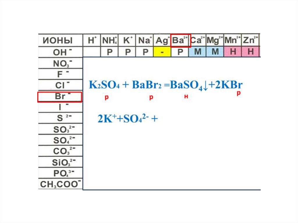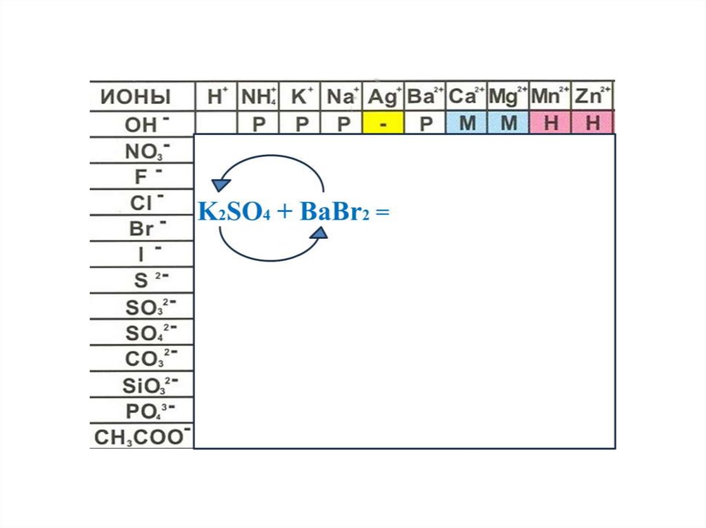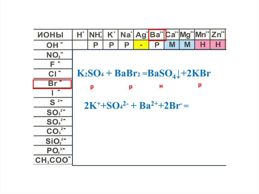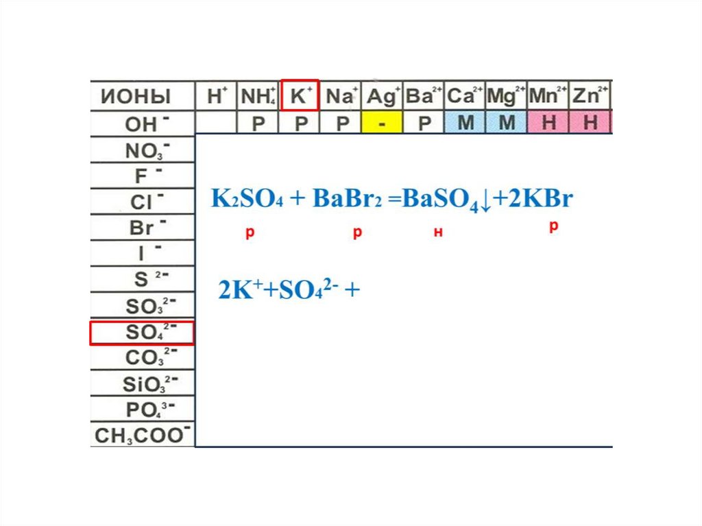 K2SO4 + BaBr2 =BaSO4↓+2KBrр