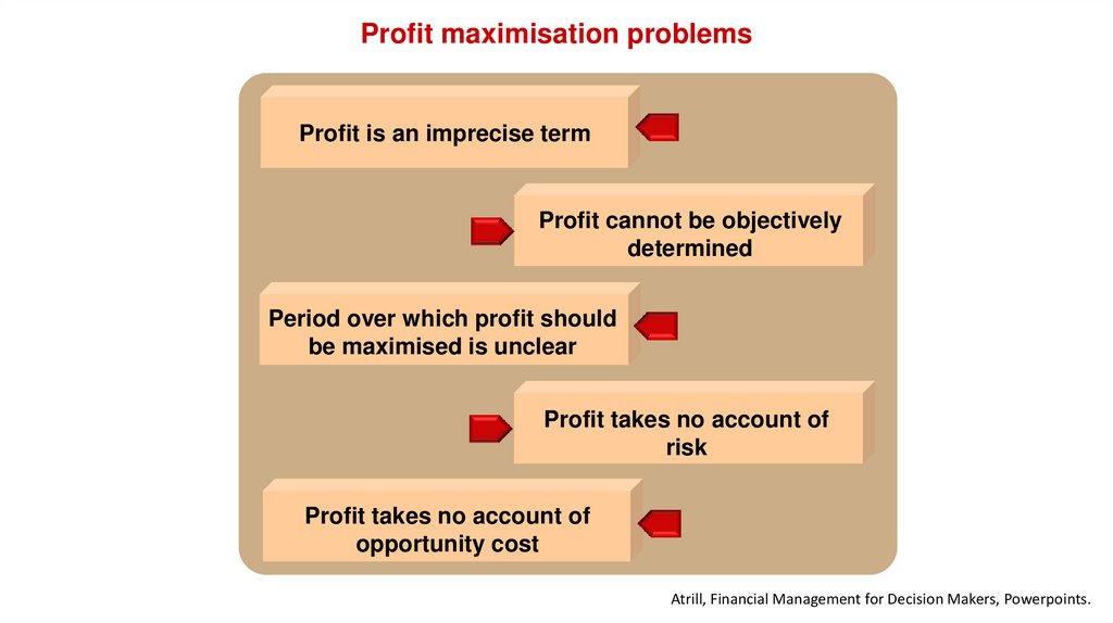 • Not the same as wealth maximisation• Vague concept as it does not capture all areas of shareholder wealth