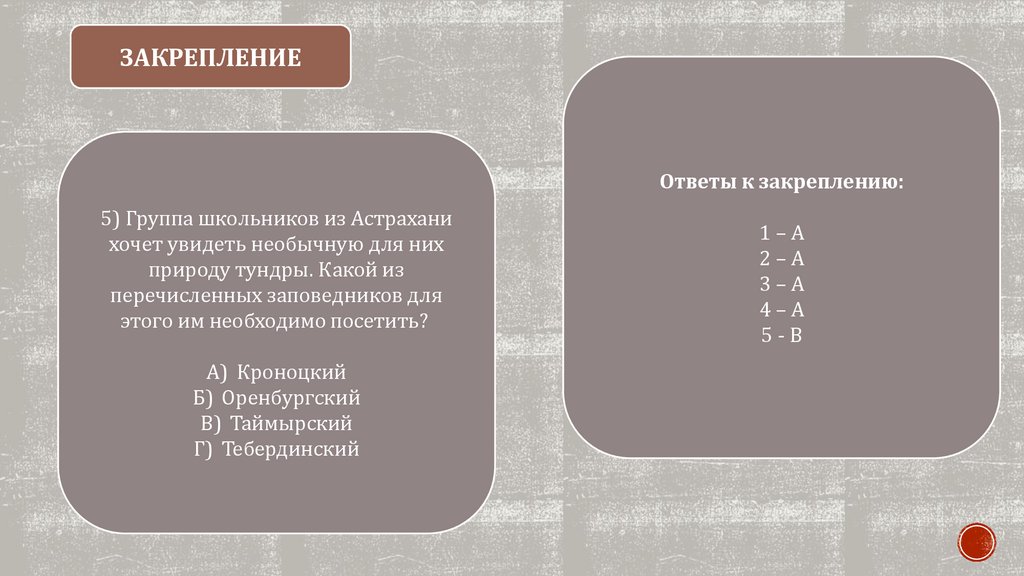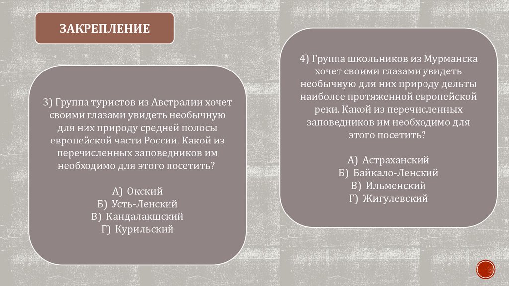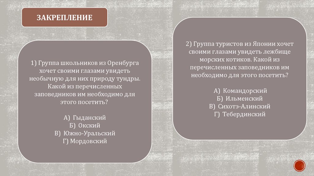 ЗАКРЕПЛЕНИЕ1) Группа школьников из Оренбурга
