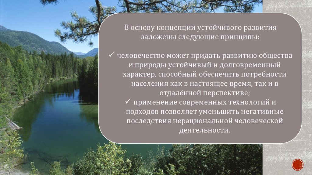 В основу концепции устойчивого развитиязаложены следующие принципы: