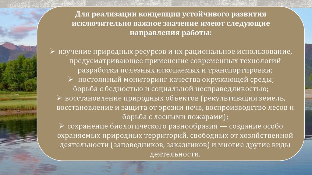 Для реализации концепции устойчивого развитияисключительно важное значение имеют следующие