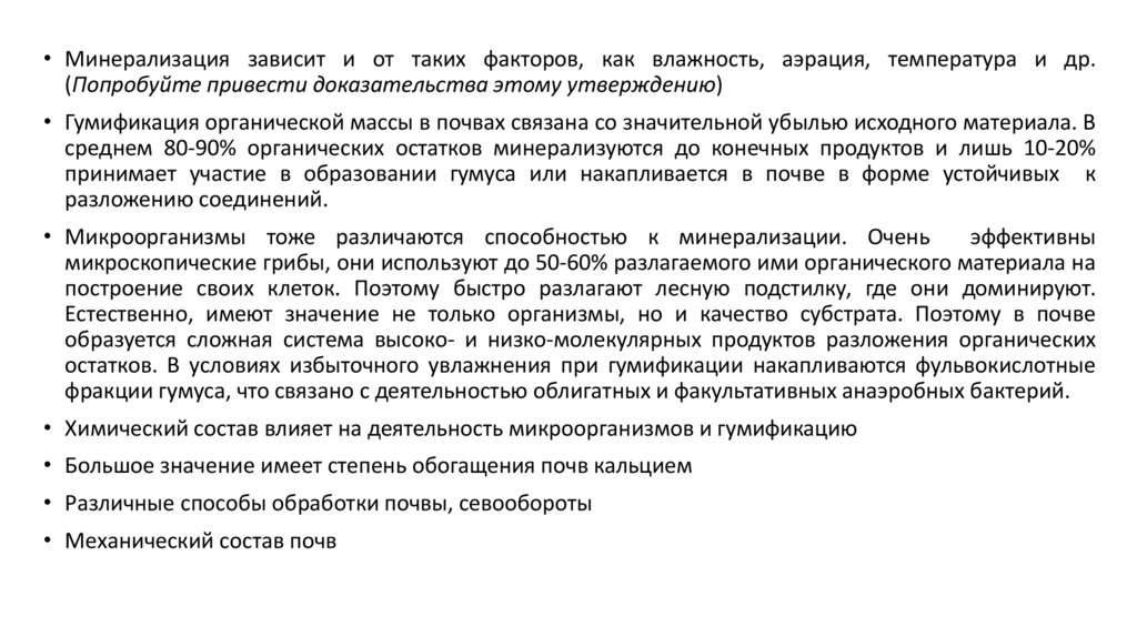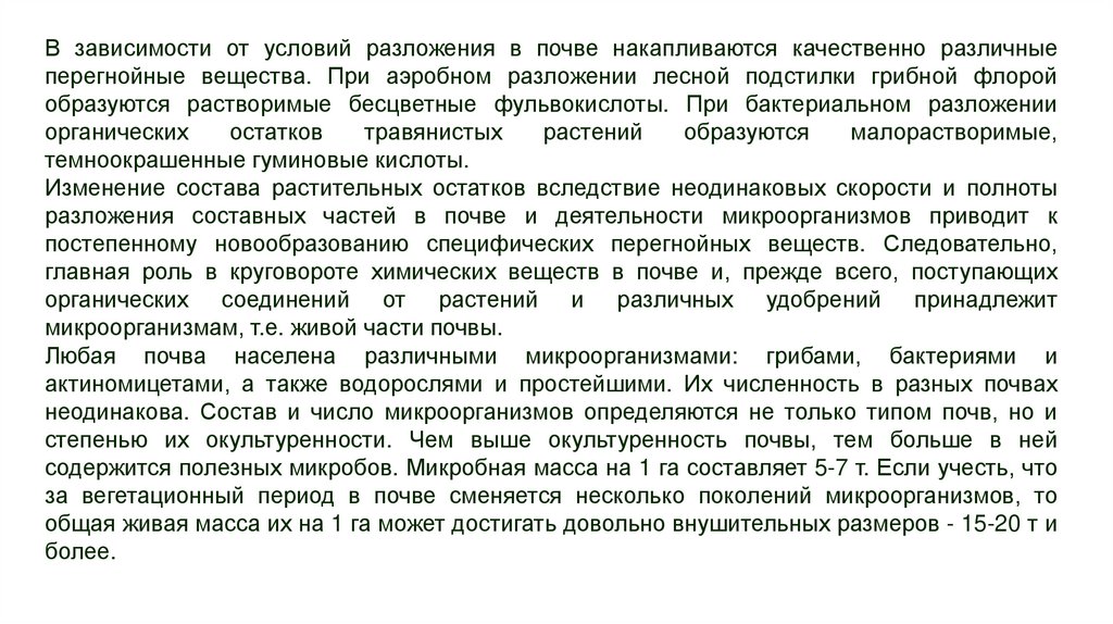 необходимое условие гумусообразования. К сожалению, до настоящего времени выяснение роли