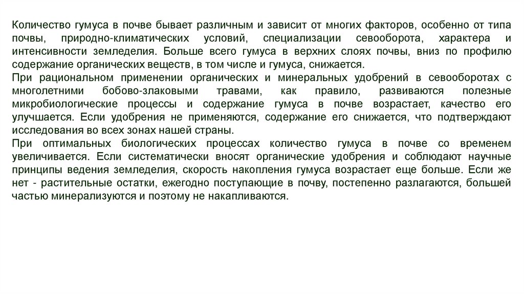 окультуривание. Таким образом, важно не только количество гумуса, но и его качество. В