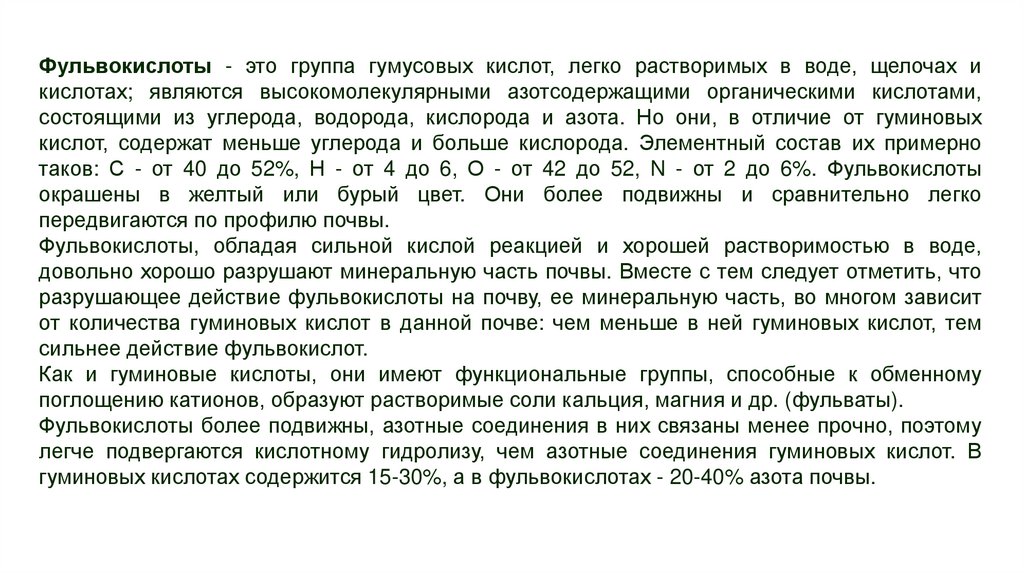 • А при интенсивном образовании фульватного гумуса почвы приобретают кислую реакцию
