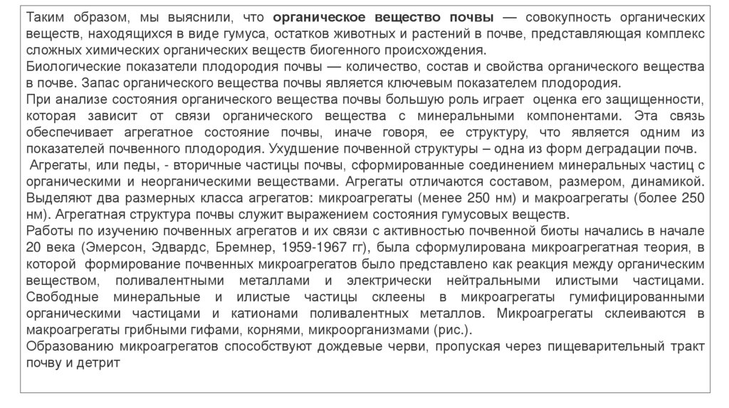 плодородия наших почв и нерациональном их использовании. Органическое вещество является