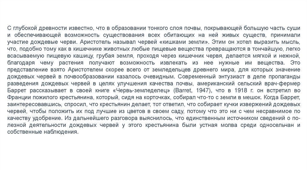 участие дождевые черви. Аристотель называл червей «кишками земли». Этим он хотел выразить мысль,