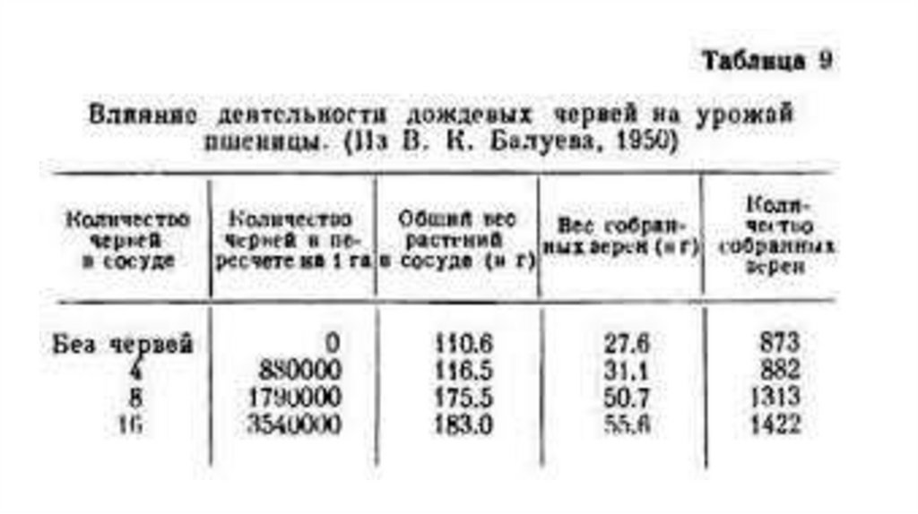 на 1 м2), их вес на 1 га равен 11 кг (средний вес одного червя 0.18 г). Гораздо более высокие цифры