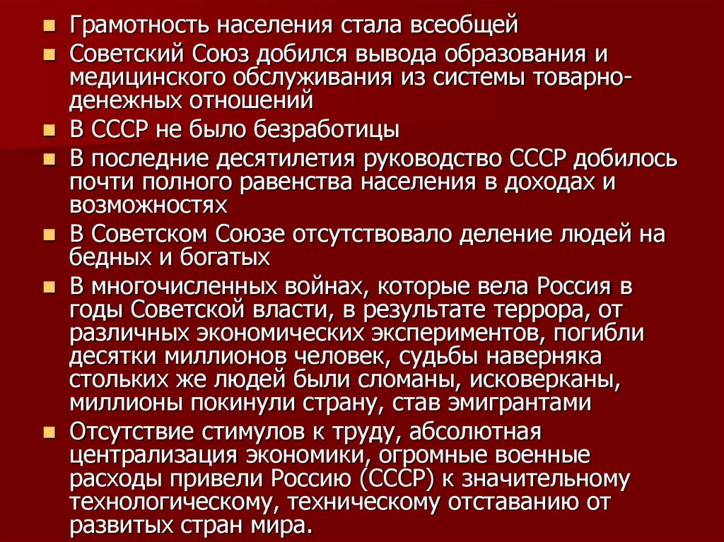 Грамотность населения стала всеобщейСоветский Союз добился вывода образования и