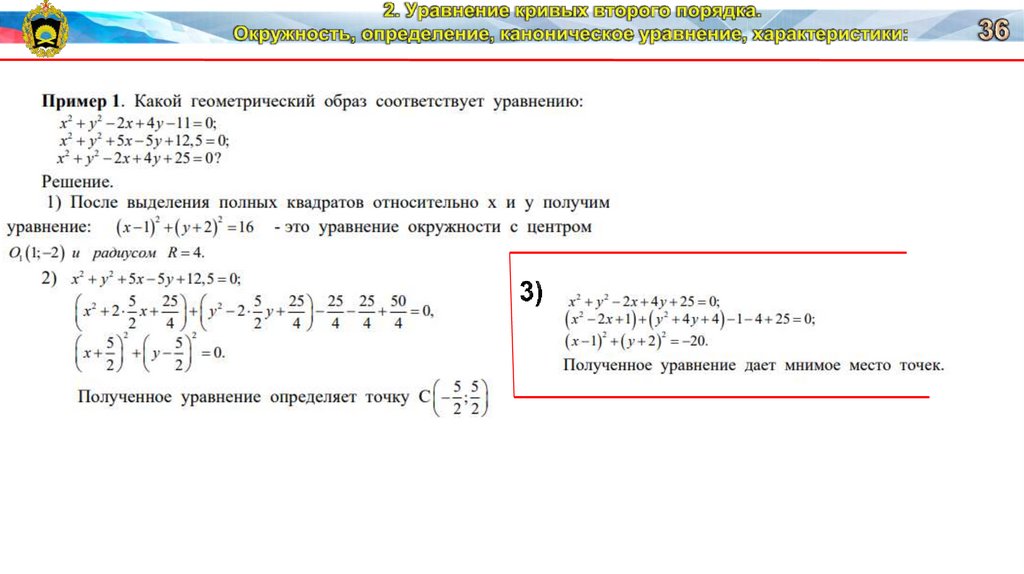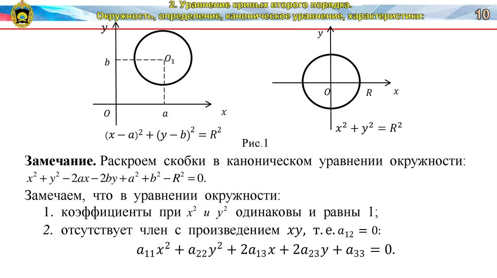 1. коэффициенты при x 2 и y 2 одинаковы и равны 1;