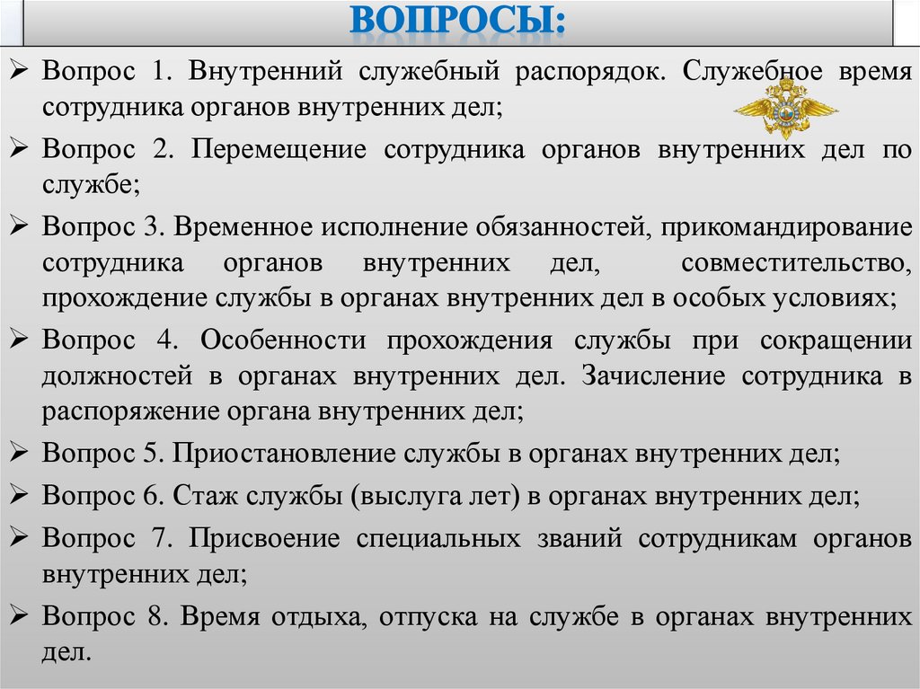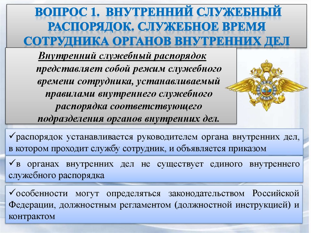Вопрос 1. Внутренний служебный распорядок. Служебное времясотрудника органов внутренних дел;