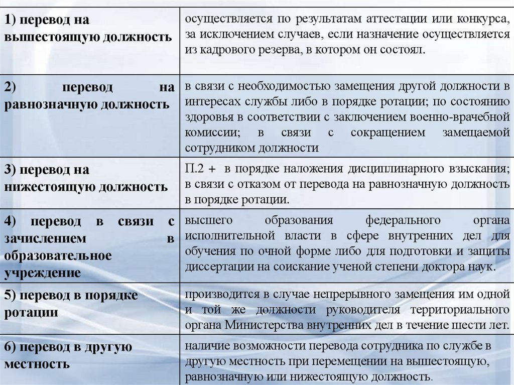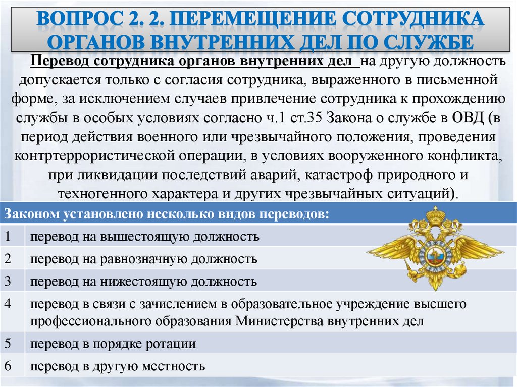 Вопрос 2. Перемещение сотрудника органов внутренних дел по