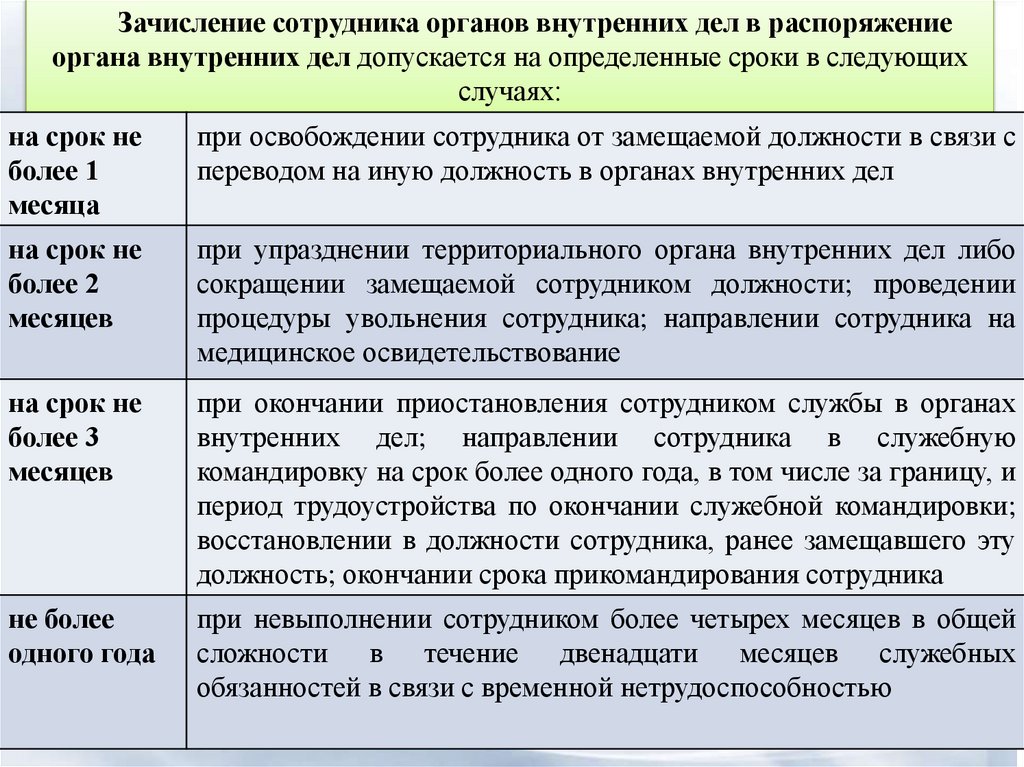 должностей в органах внутренних дел. Зачисление сотрудника в
