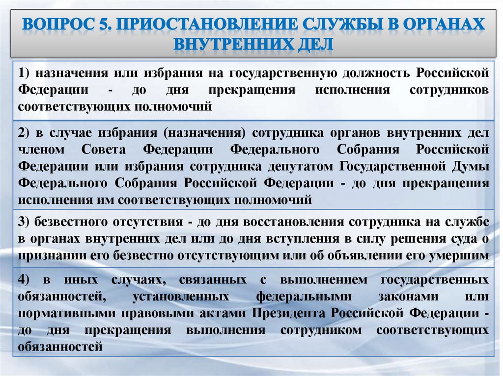 Вопрос 5. Приостановление службы в органах внутренних дел;