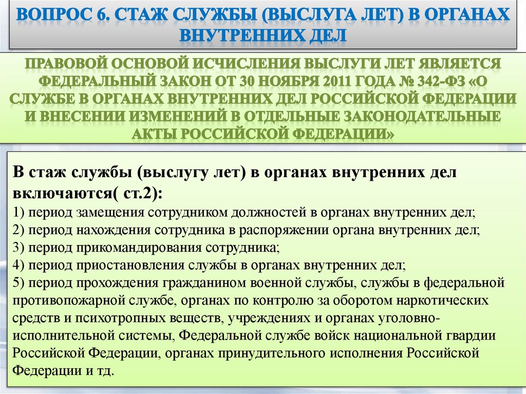 Вопрос 6. Стаж службы (выслуга лет) в органах внутренних дел;