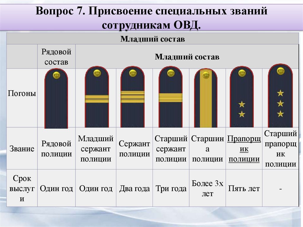 Вопрос 7. Присвоение специальных званий сотрудникам органов
