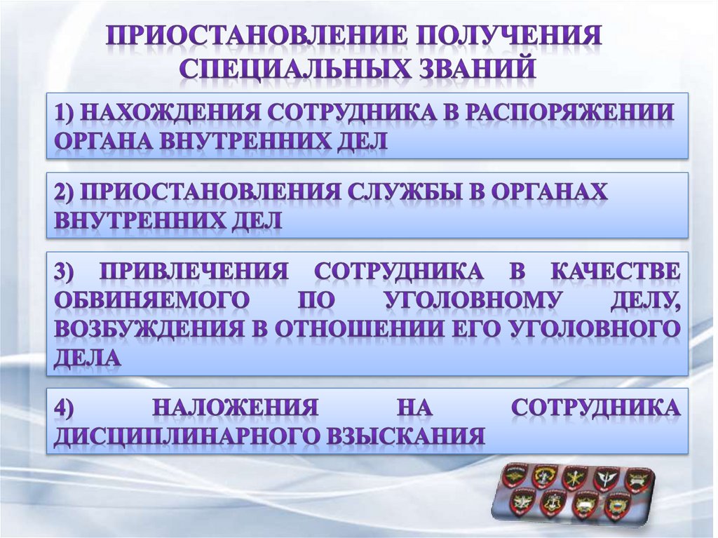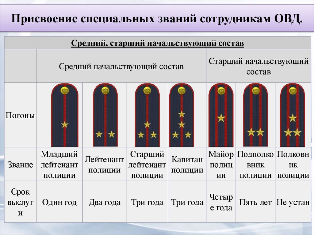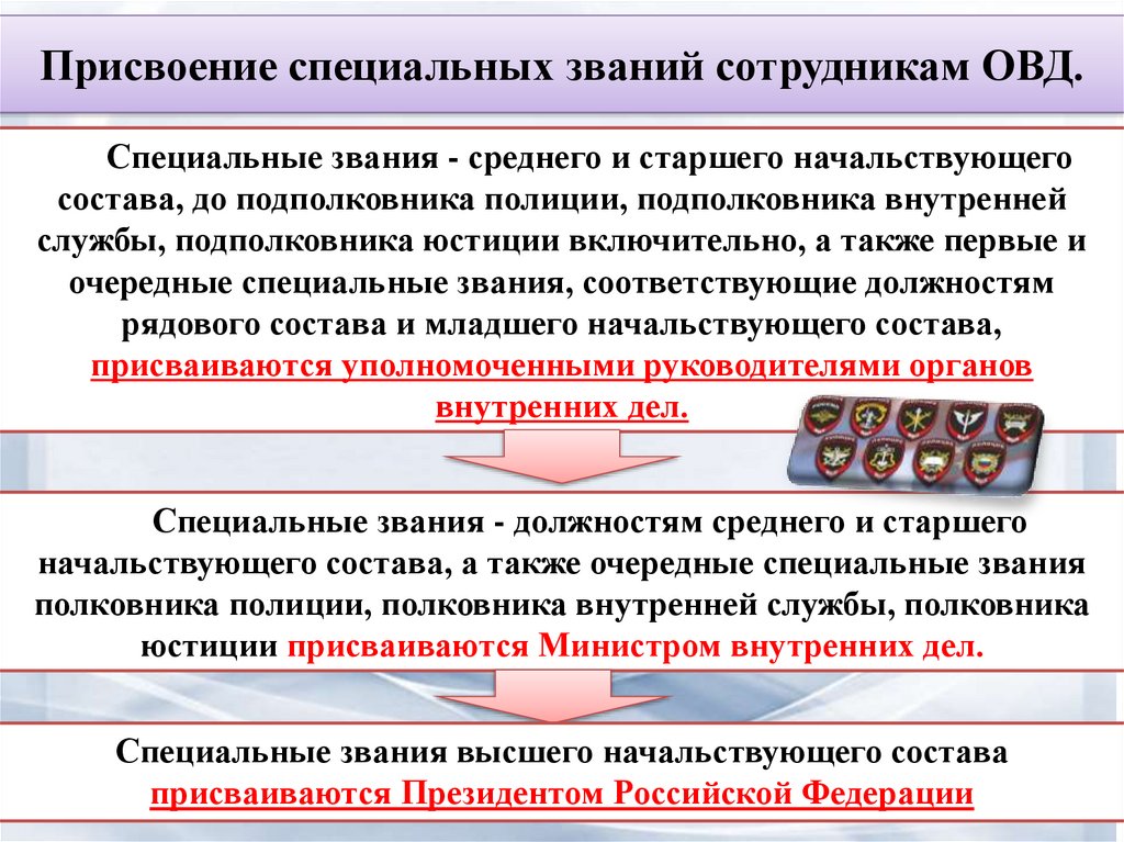 Присвоение специальных званий сотрудникам ОВД.Специальные звания - среднего и старшего начальствующего