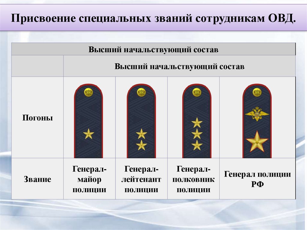 Присвоение специальных званий сотрудникам ОВД.Высший начальствующий состав