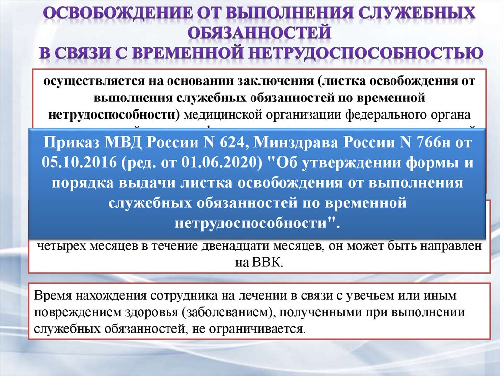 осуществляется на основании заключения (листка освобождения отвыполнения служебных обязанностей по временной