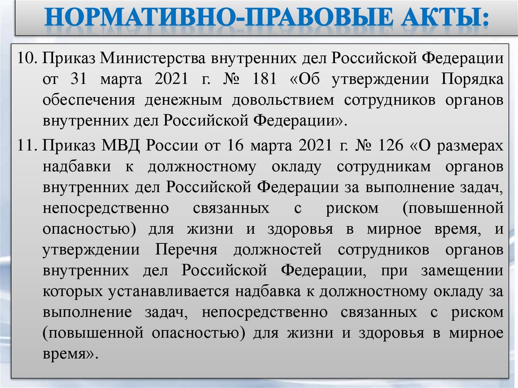 10. Приказ Министерства внутренних дел Российской Федерацииот 31 марта 2021 г. № 181 «Об утверждении Порядка