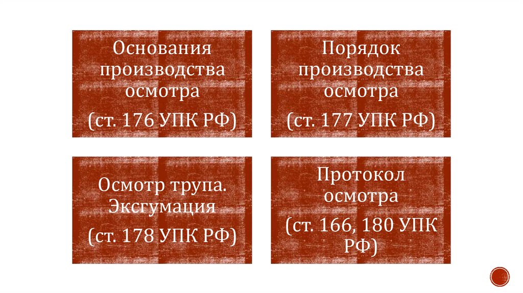 РФ; осмотр трупа – ст. 178 УПК РФ;