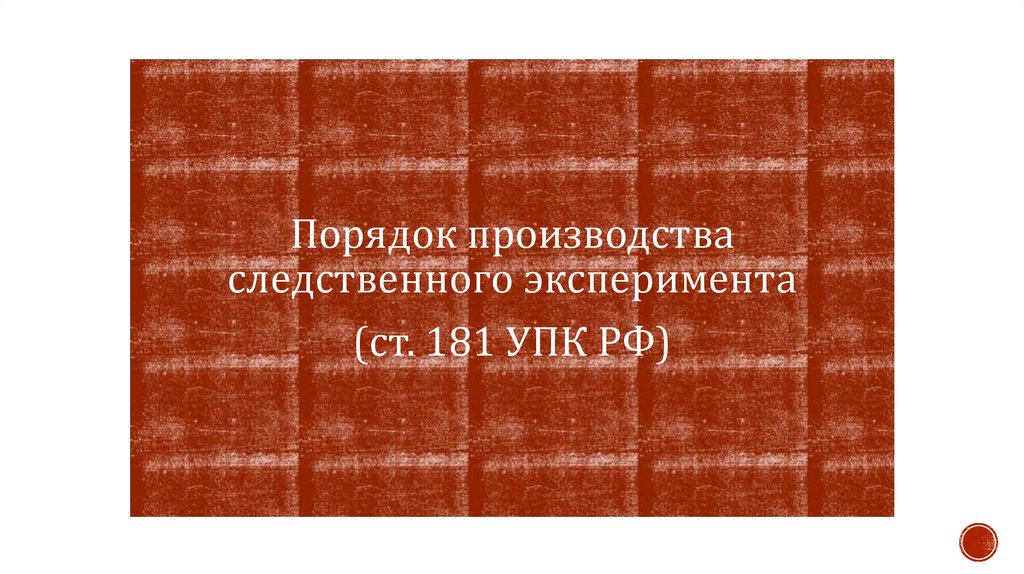 следственный эксперимент – ст. 181 УПК РФ;