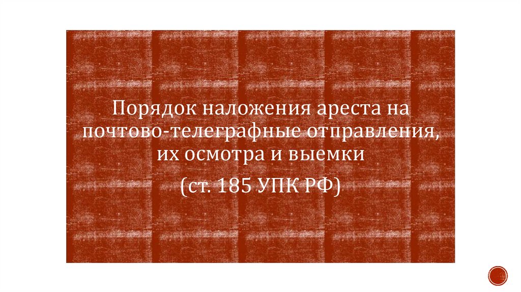 наложение ареста на почтово-телеграфные отправления, их осмотр и выемка – ст. 185 УПК РФ;