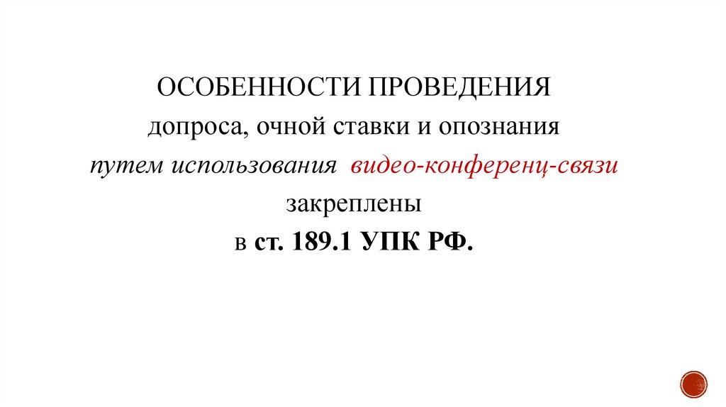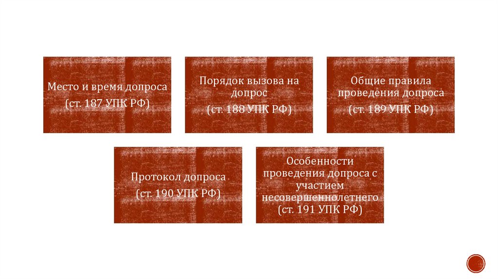 ответчика, эксперта, специалиста) — ст. 42, 44, 46, 47, 54, 56, 80, 173, 189-190, 205 УПК РФ;