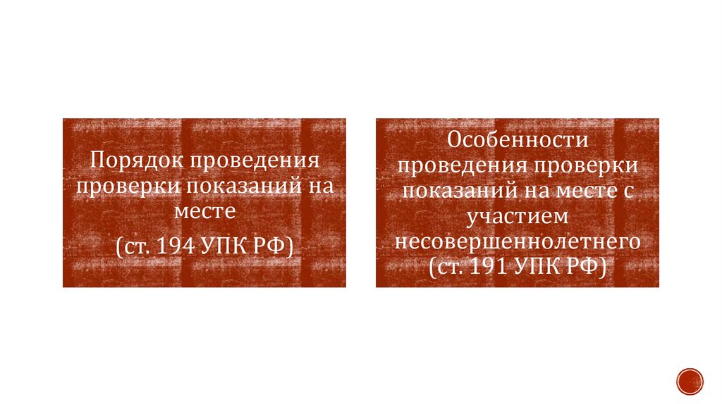 12. проверка показаний на месте – ст. 194 УПК РФ;