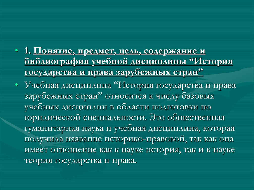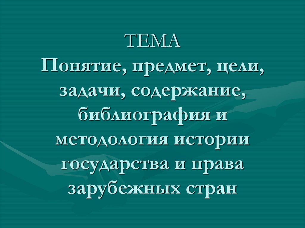 1. ТЕМА Понятие, предмет, цели, задачи, содержание, библиография и методология истории государства и права зарубежных стран