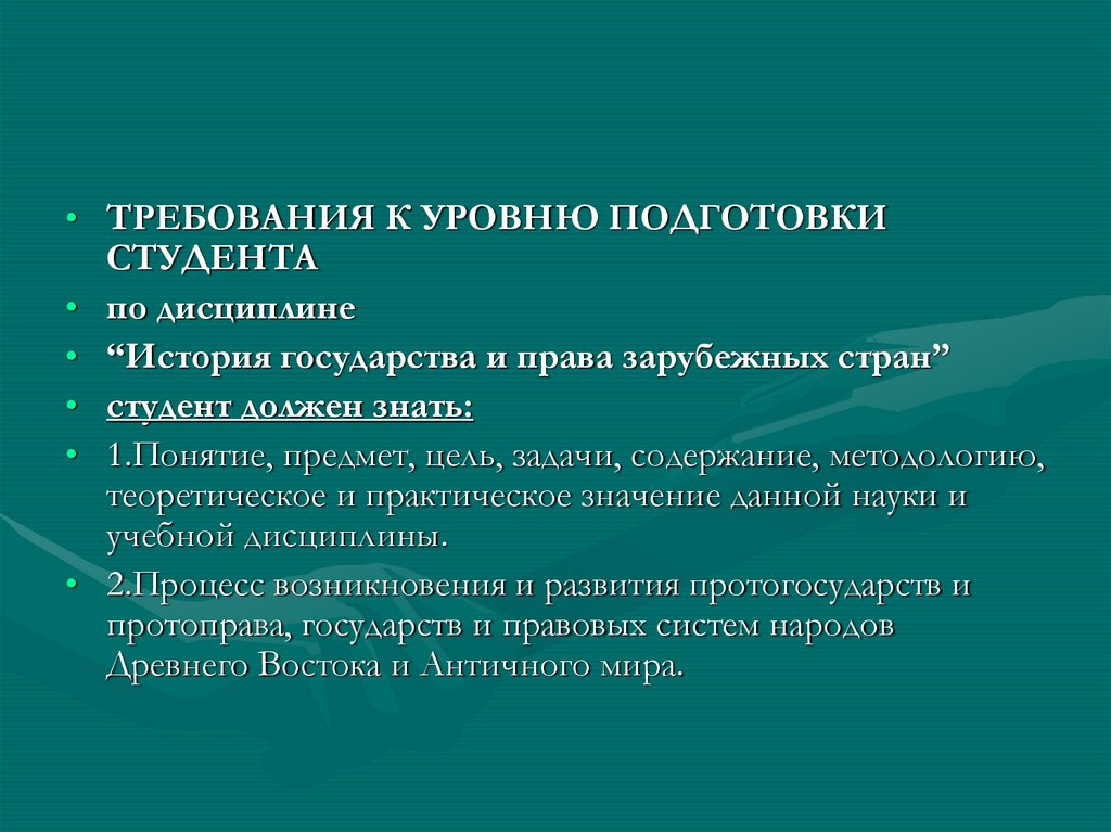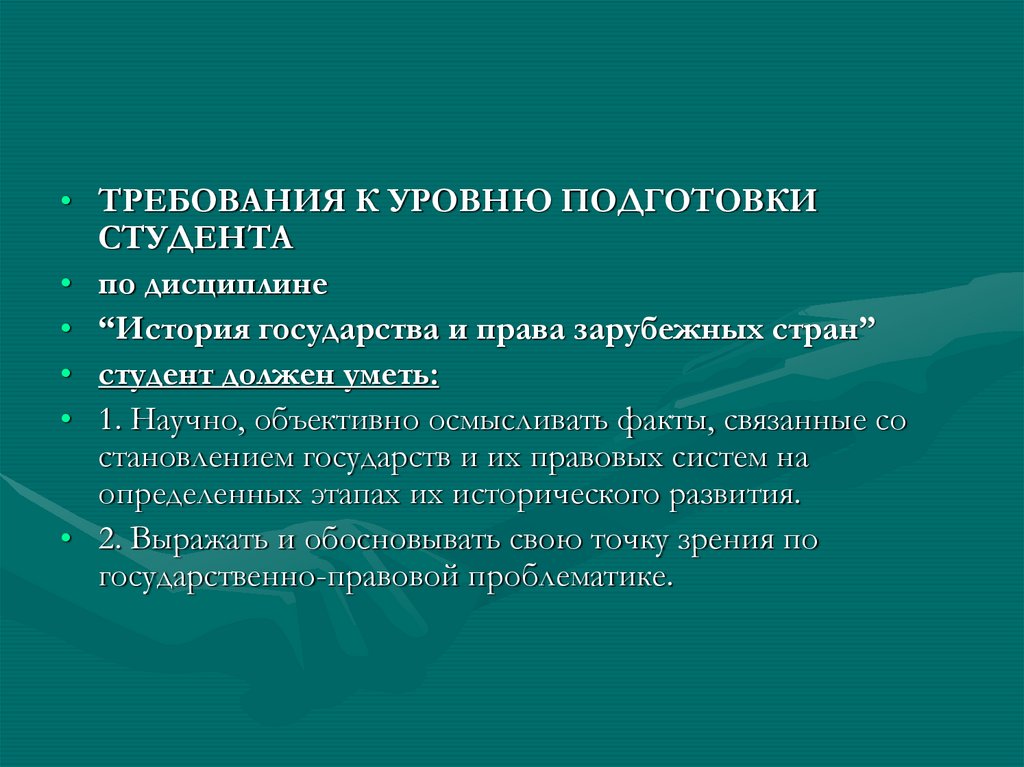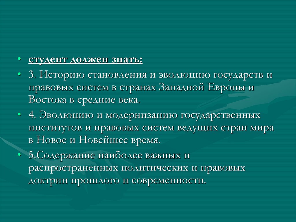 • студент должен знать:• 3. Историю становления и эволюцию государств и