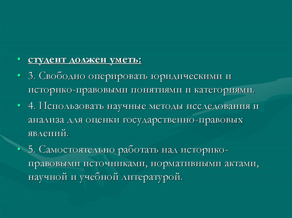 • студент должен уметь:• 3. Свободно оперировать юридическими и