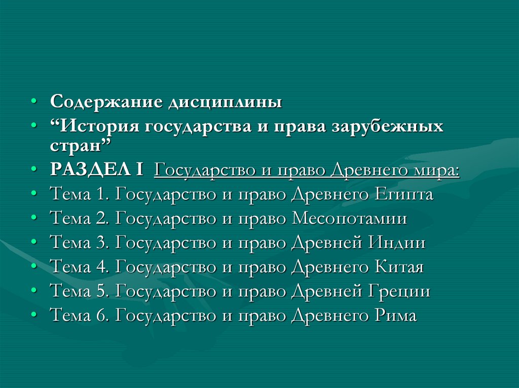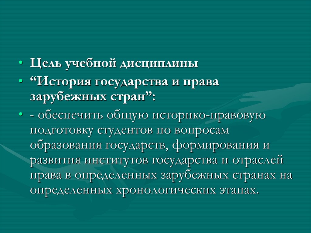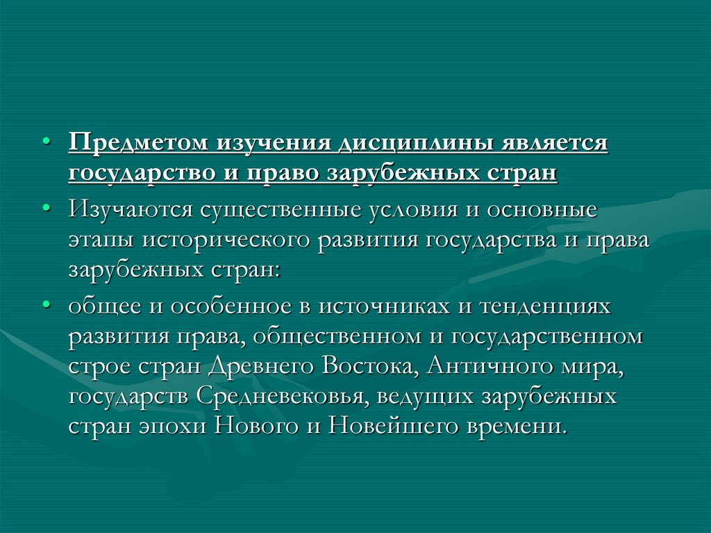 • Предметом изучения дисциплины являетсягосударство и право зарубежных стран