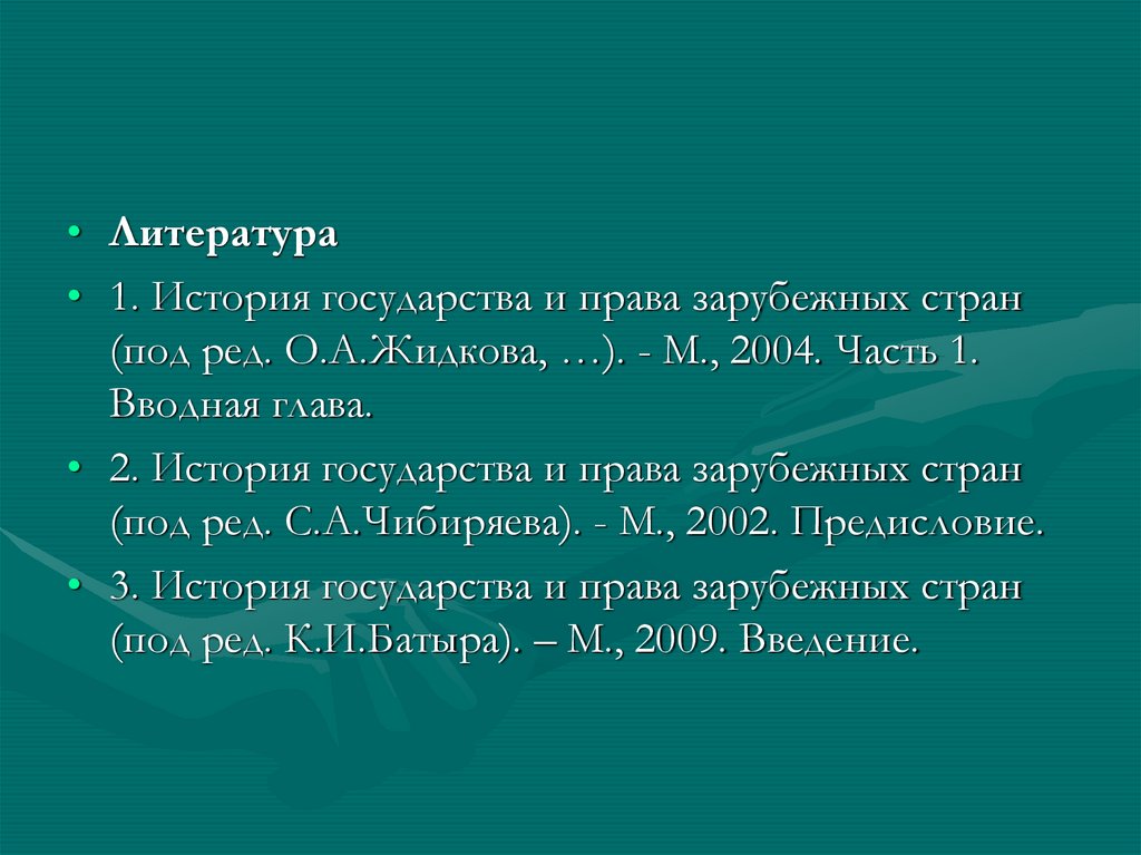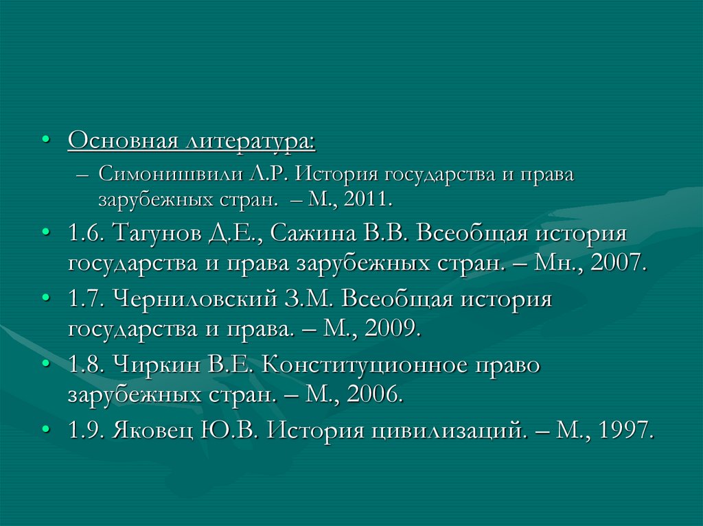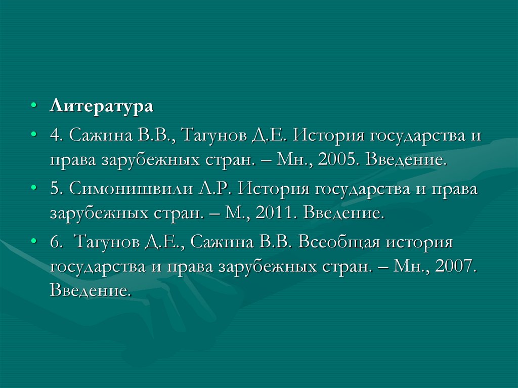 • Литература• 4. Сажина В.В., Тагунов Д.Е. История государства и