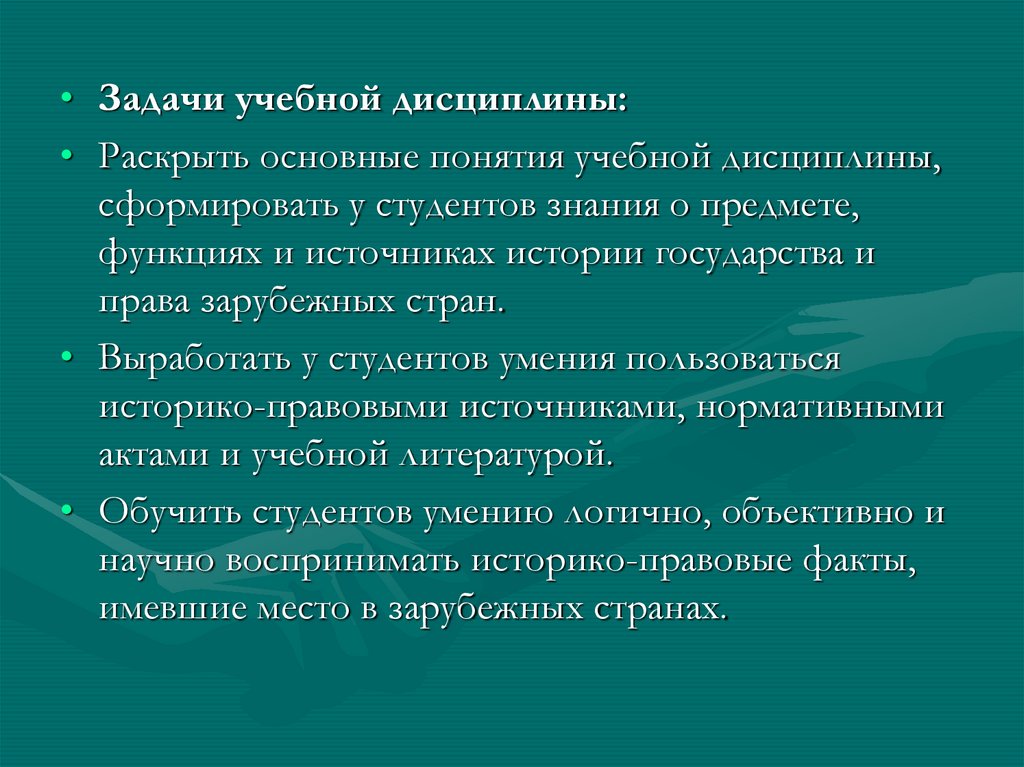 • Задачи учебной дисциплины:• Раскрыть основные понятия учебной дисциплины,