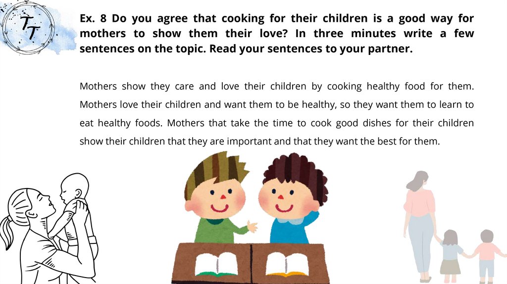 TTEx. 8 Do you agree that cooking for their children is a good way for
