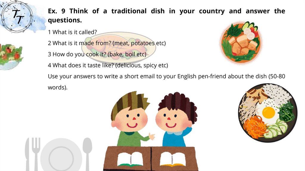 TTEx. 9 Think of a traditional dish in your country and answer the
