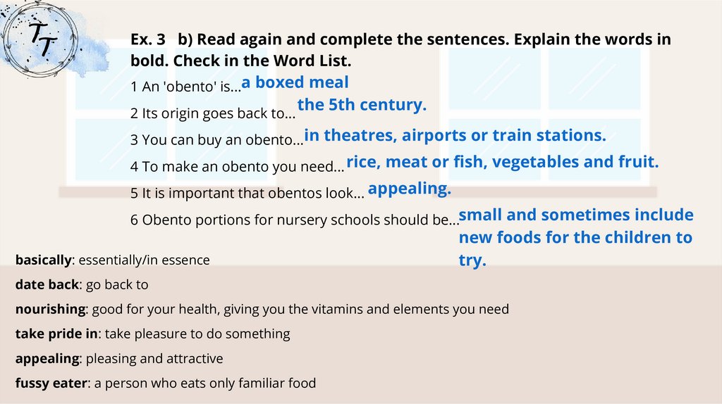 TTEx. 3 b) Read again and complete the sentences. Explain the words in